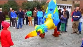 Die Menschen staunen über die exotische Schönheit dieser lebensgroßen gefiederten Freunde.