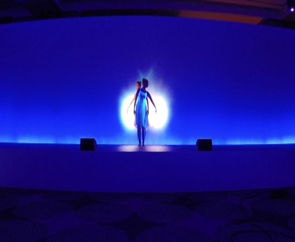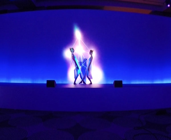 In dieser unglaublichen Projektions-Mapping-Show knistern elektrische Entladungen über den Bildschirm und bilden auf einem atemberaubenden kobaltblauen Hintergrund kunstvolle, miteinander verbundene Netzwerke aus brillantem weißem Licht. Das Publikum wird fasziniert zuschauen, wie unsere schlicht gekleideten professionellen Tänzer nahtlos mit den brillanten bewegten Grafiken interagieren, die hinter ihnen in einem eleganten Tanz angezeigt werden. Indem sie die leuchtenden Lichtkugeln und ihren Weg über den Bildschirm kontrollieren, scheinen diese Tänzer aus einer anderen Welt zu kommen.
