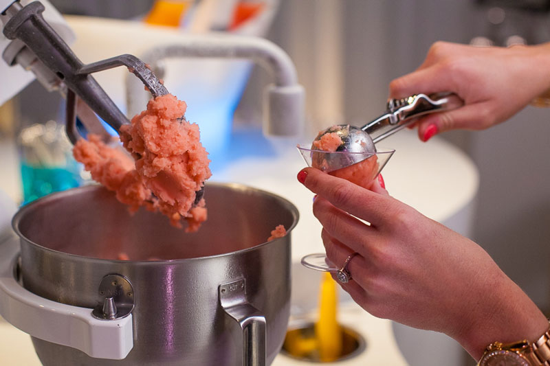 Der revolutionäre Prozess dieser Eismaschine erzeugt die köstlichen Eiscremes, Sorbets und gefrorenen Cocktails, indem sie sie direkt vor Ihnen einfriert. Unsere Gruppe von Experten wird die besten Leckereien vor den Augen Ihrer Gäste zubereiten.