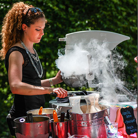 Stellen Sie sicher, dass die Gäste Ihrer Party ein einzigartiges Cocktail- und Dessert-Erlebnis haben, indem Sie diese phänomenale Stickstoff-Eismaschine buchen, eine innovative mobile Eisdiele.