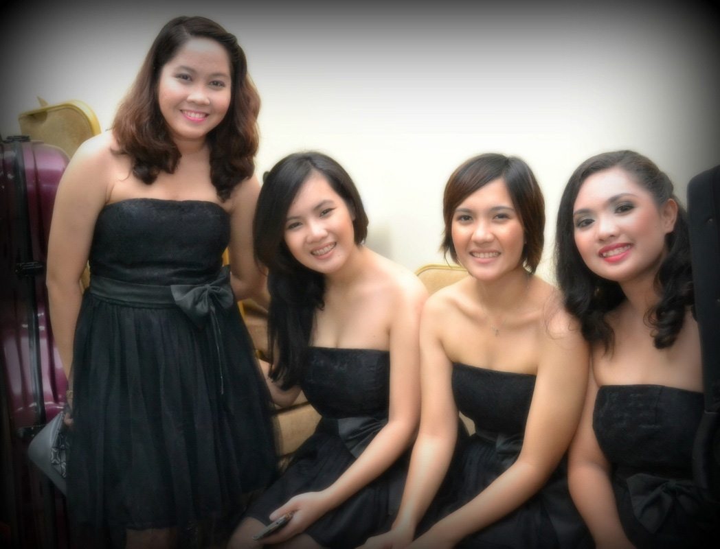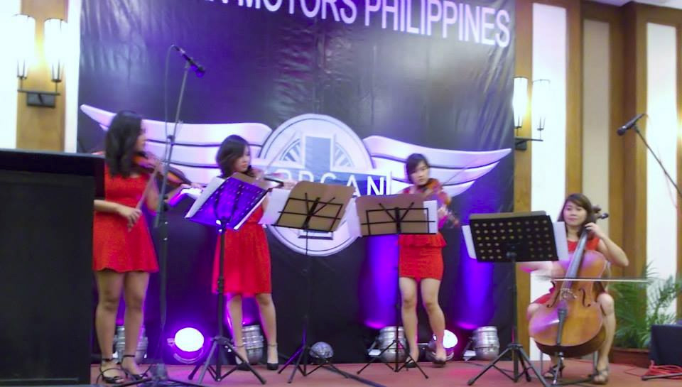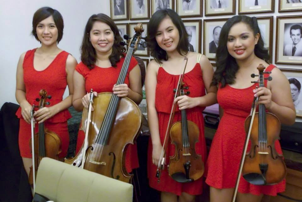 Dieses junge und glamouröse Streichquartett ist die ideale klassische, dramatische Unterhaltungsoption für eine Vielzahl von Veranstaltungen wie Hochzeitszeremonien, Produktpräsentationen, Ausstellungen, Firmenveranstaltungen und Gartenpartys. Sie haben bereits in vielen der führenden Hotels, Konzertstätten und Konzertsälen der Philippinen gespielt und auch im Ausland aufgetreten.