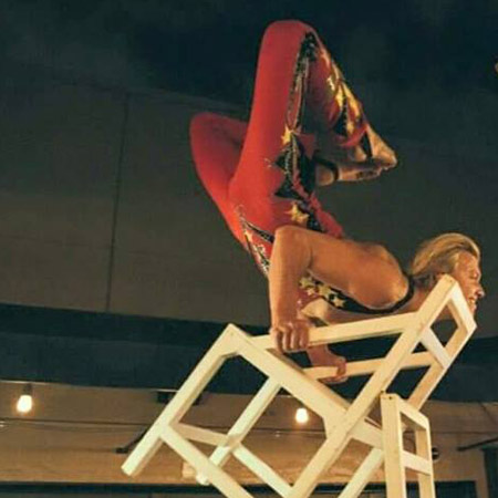 Mit der Verbindung von zeitgenössischem Tanz und klassischer Zirkuskunst bringt dieser Künstler frischen Wind in traditionelle 'Stuhl-Balancier'-Routinen. Als flexibler und einfallsreicher Performer produziert der Künstler elegant erstaunliche Balanceakte und unglaubliche Verrenkungen, während er Stühle übereinander stapelt.