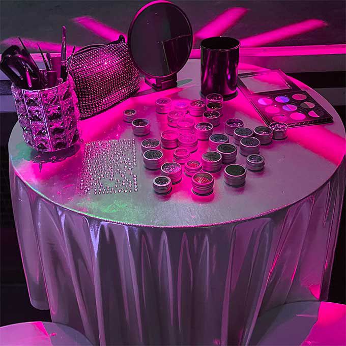 Die ideale Wahl, um Ihre Gäste in Stimmung zu bringen, bevor sie auf die Tanzfläche gehen, oder um die Menge mit Glitzer-Make-up zu verwandeln und Ihr Event zum Funkeln zu bringen!