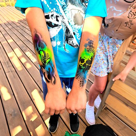 Ein temporärer Tattoo-Künstler ist eine zeitgemäße und spaßige Variante des klassischen Gesichts- und Körperbemalens, perfekt für private Partys und Festivals!