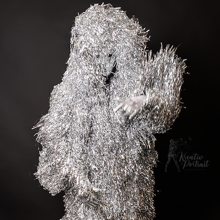Der Lametta-Mann ist eine wahrhaft einzigartige, atemberaubende Darbietung, geschmückt mit Tausenden von Lamettafäden, die einen schillernden, glitzernden Effekt erzeugen