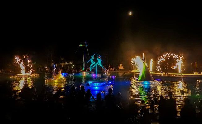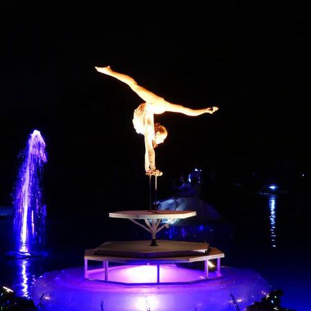 Diese wunderschöne Show bietet Live-Musik, Zirkus- und Feuerkünstler und findet auf dem Wasser statt - Künstler schweben auf der Wasserbühne.