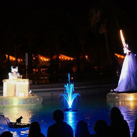 Die Show kann in verschiedenen Wasserumgebungen aufgeführt werden und eignet sich ideal für thematische und saisonale Nachtveranstaltungen in Parks.