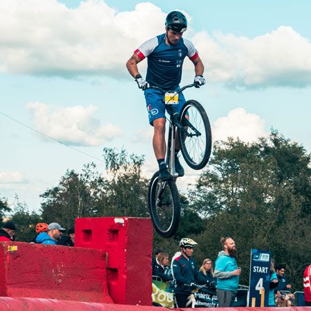 Unser Trial-Biker ist seit über einem Jahrzehnt ein professioneller Athlet, der weltweit in den Top 10 platziert ist. Er ist bekannt für seine extreme Präzision und atemberaubenden Stunts.