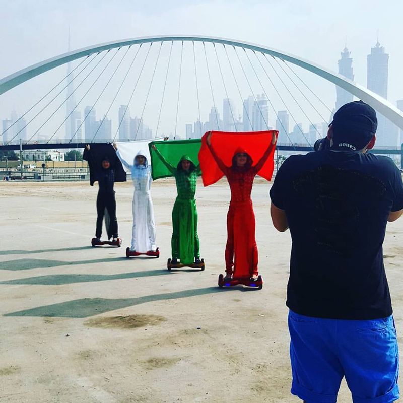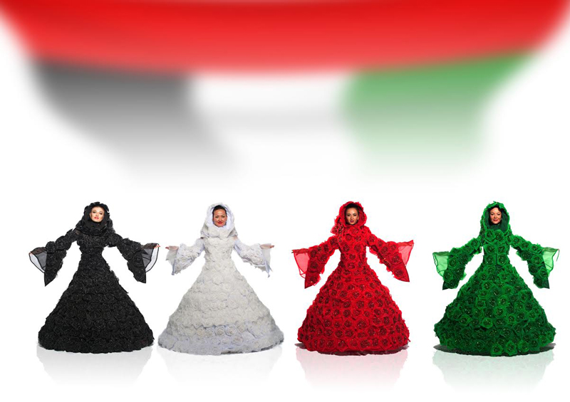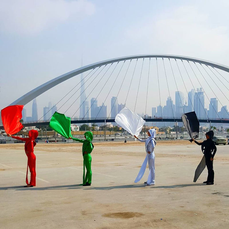 Aerial Shows, Blumenkleider mit der Flagge der VAE, Darsteller auf Hoverboards...alle unsere Künstler können ihre Auftritte mit den Farben der VAE-Flagge anpassen!