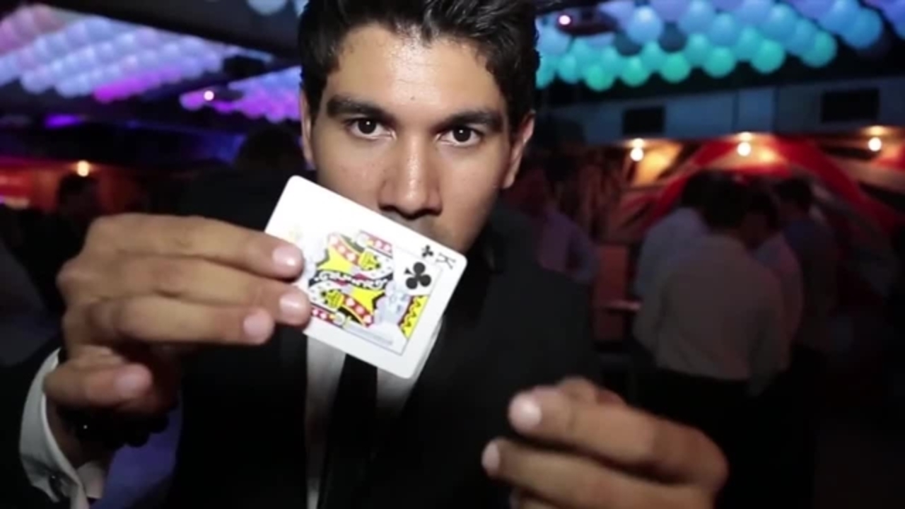 Seine Fähigkeit, einen Raum zu betreten und jedes Publikum einzubeziehen, ist erstaunlich. Er mischt seine Fähigkeiten als Magier, Komiker und sogar Taschendieb ein, um das Publikum zur Interaktion zu bringen.