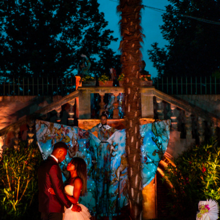 Wenn der Tag in die Nacht übergeht, unterziehen sich unsere venezianischen Flügeltänzerinnen eine magische Verwandlung zu atemberaubenden LED-Flügeln, die jedem Event den gewissen Wow-Faktor verleihen.