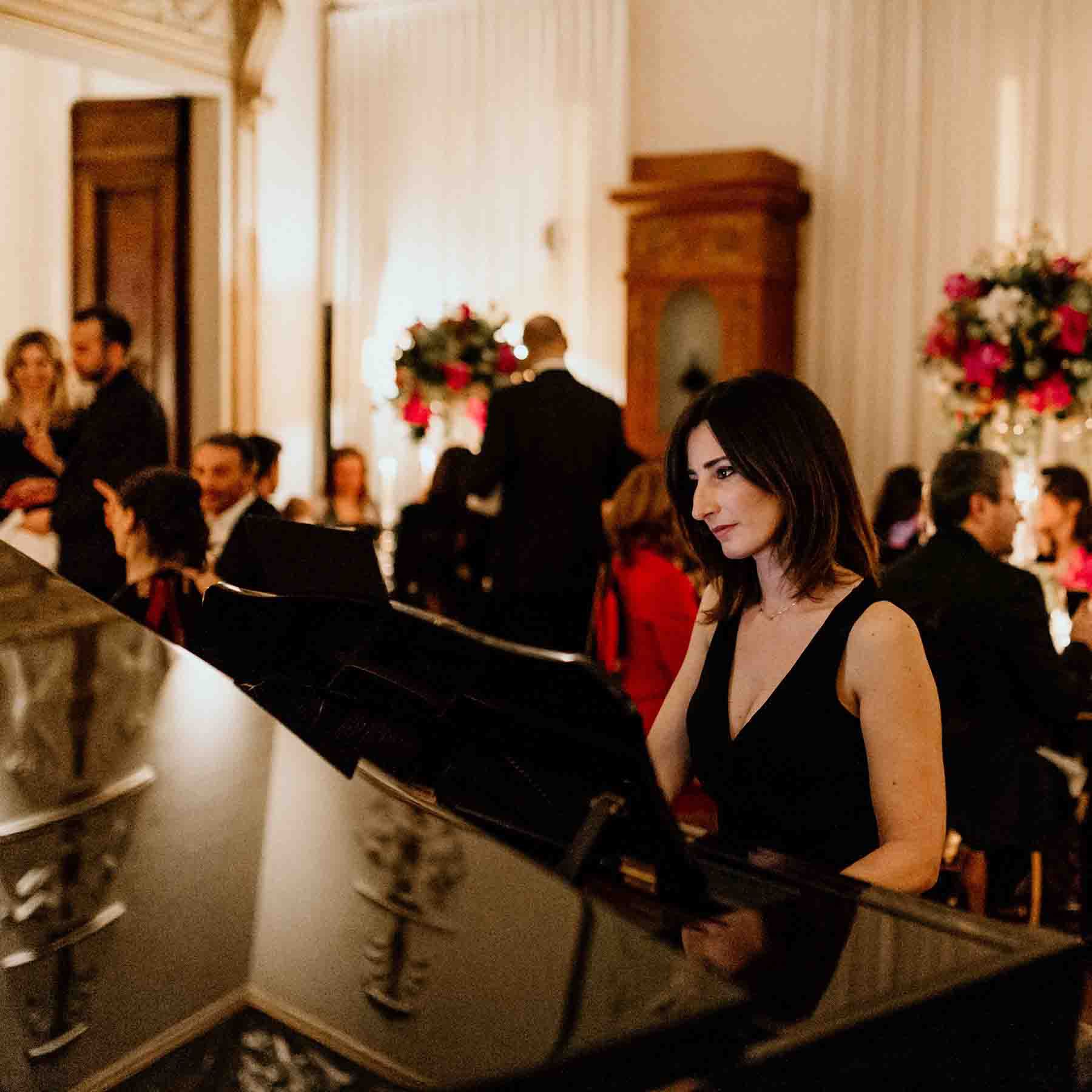 Eine professionelle italienische Pianistin, die hochwertige Darbietungen liefert, die speziell für Ihre Veranstaltung aus ihrem umfangreichen Repertoire maßgeschneidert werden können.
