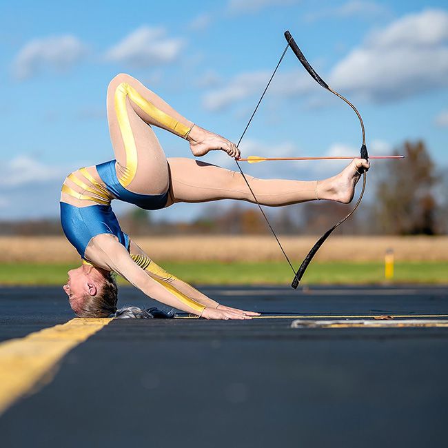 Guinness-Weltrekord haltende Kontorsionistin und Fußbogenschützin, die extreme Flexibilität, Stärke und beeindruckendes Können auf der Bühne vereint