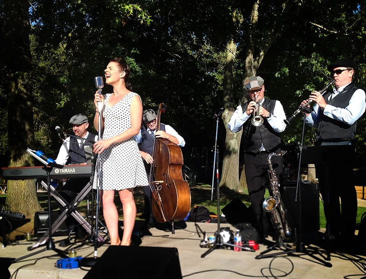 Eine 6-köpfige Vintage-Tanzband, die Vintage-Musik mit Tanzmusik kombiniert, um die ultimative Swing-Band-Performance zu schaffen, ist bei Zuschauern jeden Alters beliebt. Mit einer dynamischen und gefühlvollen Darbietung besteht unsere talentierte Band aus 5 talentierten Musikern und einer weiblichen Sängerin, die aus mehreren aufregenden Jahrzehnten amerikanischer Musik schöpfen, um eine vielseitige und mitreißende Live-Band-Performance zu schaffen.