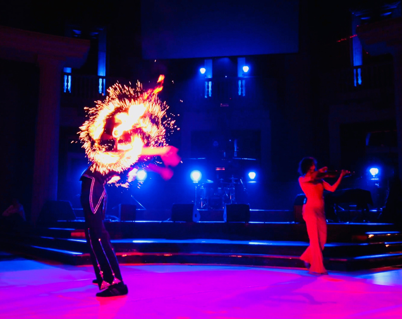 Eine poetische Fusion aus live gespielter Violinenmusik und Tanz mit Feuer, dieses atemberaubende musikalische Spektakel wird garantiert unvergessliche Erinnerungen hinterlassen.