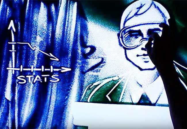 Sandkunstanimation beinhaltet die Manipulation von Sand, um eine Geschichte zu erzählen. Sandkünstlerin Anna filmt die Sandkunstgeschichte, während sie sie erstellt. Die endgültige Videodatei wird mit dem Kunden oder dem Online-Publikum geteilt.