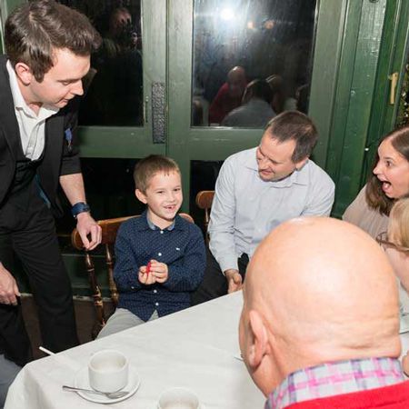 " Er trat bei unserer Firmenfeier auf. Er mischt sich so gut unter die Menge und begeisterte sowohl Erwachsene als auch Kinder gleichermaßen. Die Tricks sind wirklich atemberaubend und alle haben seine Zeit mit uns sehr genossen. "