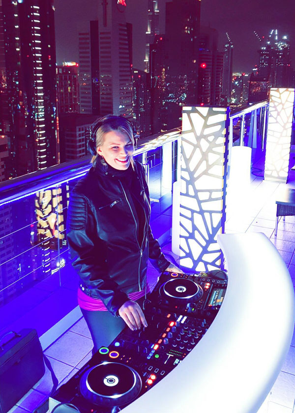 Seit ihrem Umzug nach Dubai wurde diese talentierte Künstlerin die erste weibliche Resident-DJ im Al Murooj Rotana Hotel. Sie sammelte Erfahrungen in den VAE und sicherte sich Verträge mit Fünf-Sterne-Locations und Hotels wie iKandy im Shangri-La Hotel, Drift im Royal Mirage, Ray's Bar in den Etihad Towers und Level 43 Sky Lounge im Four Points Dubai.