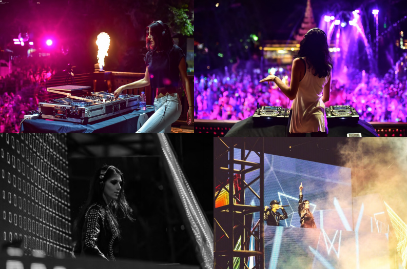 Vielseitige weibliche DJ spezialisiert sich auf verschiedene Genres wie Bass, Dubstep, Trap, EDM und House-Musik
