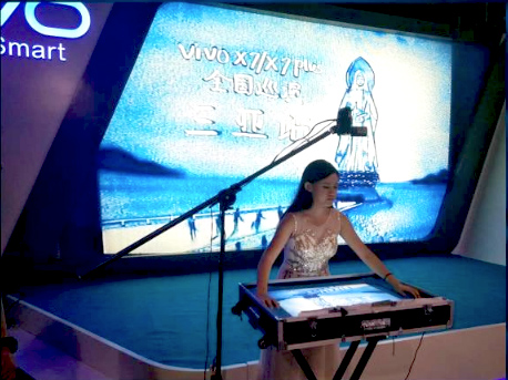 Beeindrucken Sie Ihre Gäste bei Ihrer Veranstaltung mit den außergewöhnlichen Meisterwerken dieser weiblichen Sandkünstlerin aus China, einer Künstlerin, die Sand in Kunst verwandelt.