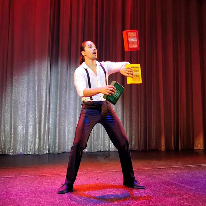 Unser Zirkusjongleur führt Tricks mit mehreren Boxen, Boxenaustausch, Balancieren und anderen unterhaltsamen Routinen vor.