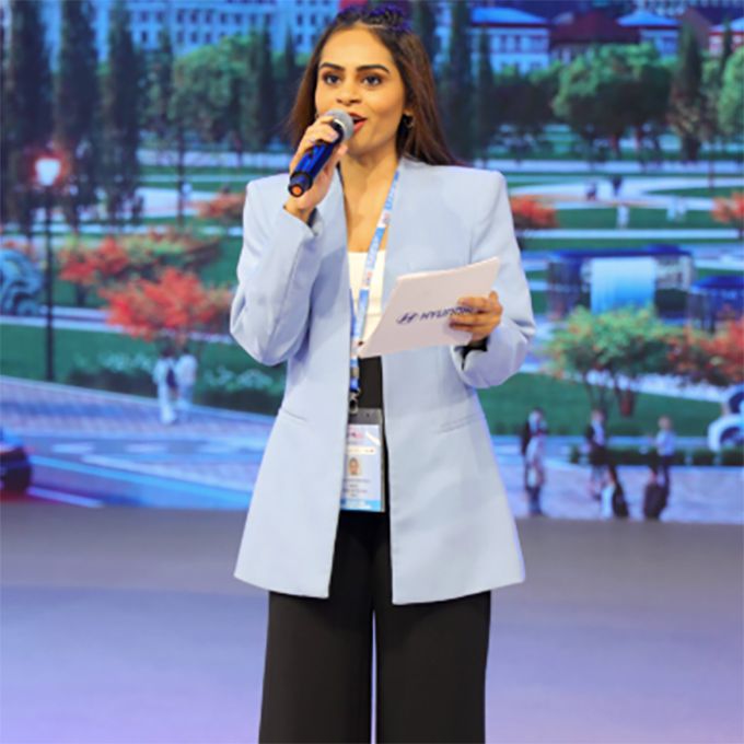 Gut in Englisch und Hindi, kann diese Veranstaltungsmoderatorin Ihr Event in beiden Sprachen moderieren.