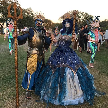 Wir haben eine einzigartige Unterwasserwelt mit einer Kombination aus unglaublichen Auftritten geschaffen. Von Meerjungfrauen, die auf bemalten Pferden reiten, über hängende Quallen, spazierende menschliche Kugelfische bis hin zu einem auf Stelzen laufenden König und einer Königin Neptun und vielen weiteren umherziehenden Künstlern, die an einer Unterwasserparade teilnahmen. Wir haben sogar ein riesiges Riesenrad mit einer Höhe von 23m gesichert! Mit viel Liebe zum Detail ließen wir die Gäste in eine mystische (fast unvorstellbare) Unterwasserwelt eintauchen, oder besser gesagt "abtauchen".