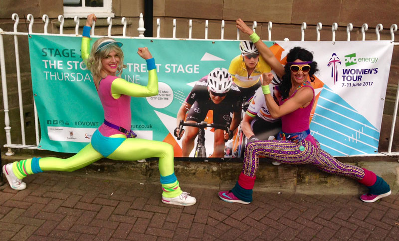 Tratando valientemente de animar a los desprevenidos miembros del público a unirse a su divertida rutina de ejercicios de los años 80, estos personajes cómicos deleitarán a todas las audiencias con su eterna alegría.