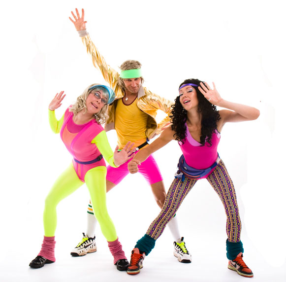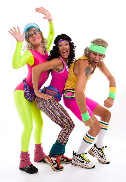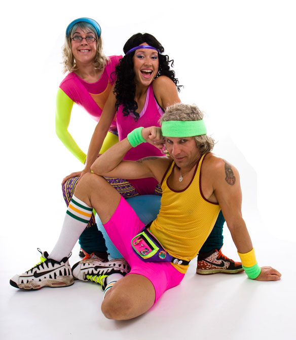 Cada actuación consiste en un paseo temático de entretenimiento de los años 80, con o sin música, que culmina en una breve clase de aeróbicos con nuestro trío de mantenimiento físico: un instructor y sus dos asistentes.