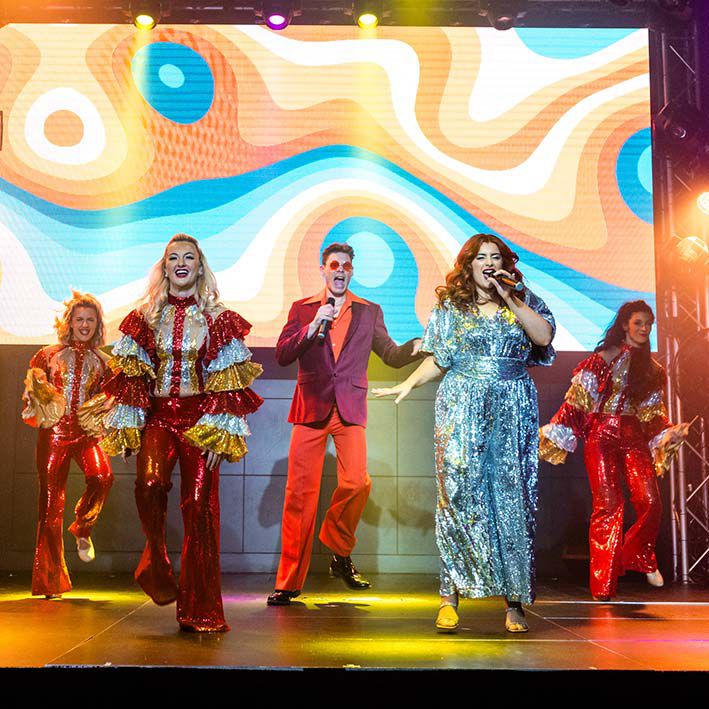 Nuestros increíbles vocalistas y bailarines están listos para transportarte a través de un agujero de gusano de éxitos clásicos y movimientos de baile icónicos. Desde las vibraciones retro de los años 50 hasta la fiebre disco de los 70, la energía glamorosa de los 80 y los ritmos contagiosos de los 90, este espectáculo es una montaña rusa de nostalgia y entretenimiento.