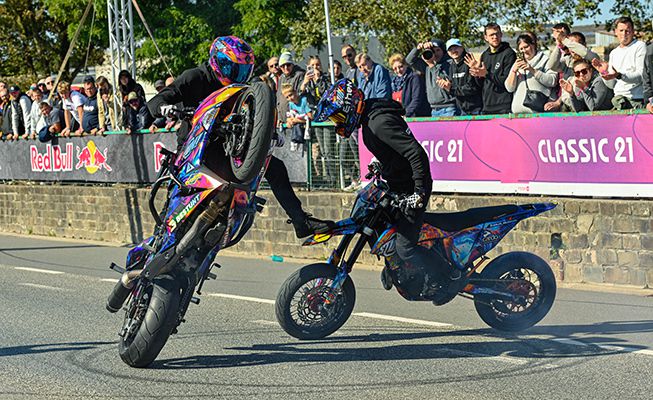 Llenos de precisión, creatividad y técnicas asombrosas, sus emocionantes espectáculos de acrobacias en motos mantienen al público en vilo
