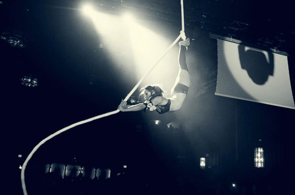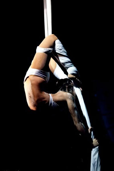La coreografía de esta artista aérea siempre es hermosa y elegante, con un toque de vitalidad feroz, que combinado con sus sensuales trajes crea un espectáculo aéreo inolvidable y fascinante.