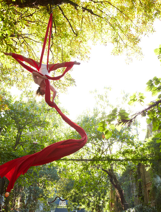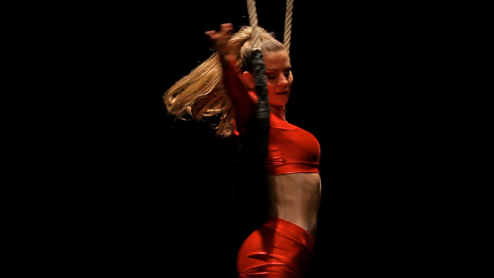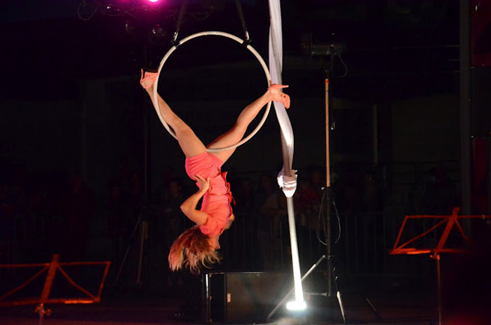 - Telas Aéreas: Una disciplina aérea realmente hermosa, la artista trepa y se cuelga del techo de un lugar utilizando una cinta larga. Ideal para cualquier evento elegante, nuestra acróbata aérea demuestra con gracia posturas llamativas.