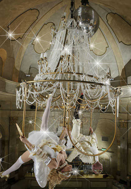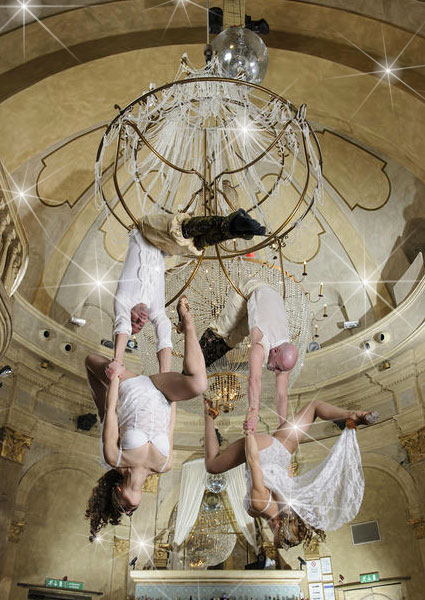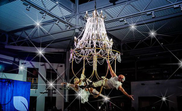 Este impresionante acto aéreo añadirá el factor WOW a tu evento mientras realizan un elegante y dinámico espectáculo colgando de un reluciente candelabro.