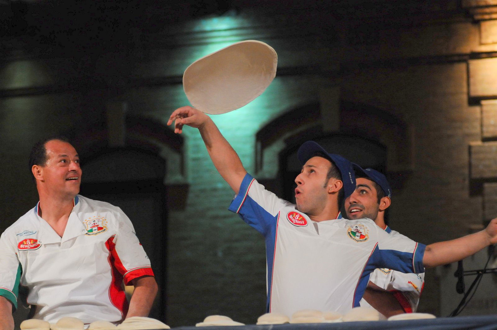 Entre una charla, un plato de espaguetis y una buena pizza, comenzaron a lanzar las pizzas al aire solo por diversión y descubrieron que en realidad eran muy buenos en eso. Y así nacieron los Hacedores de Pizza Acrobáticos.