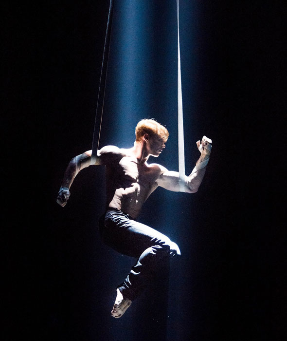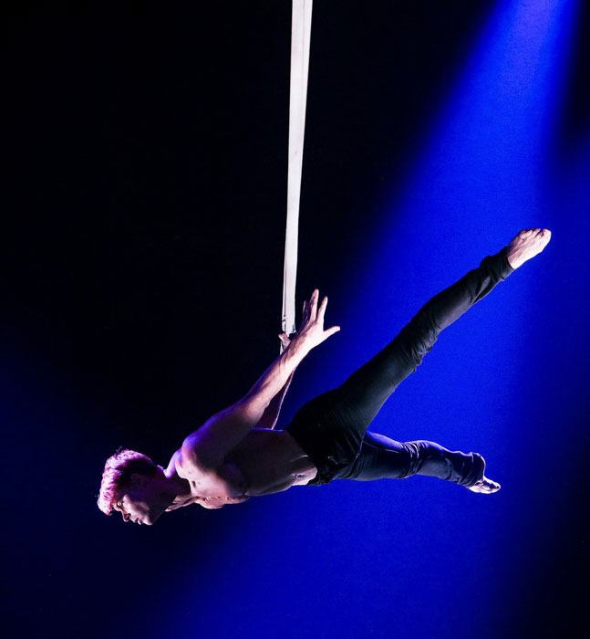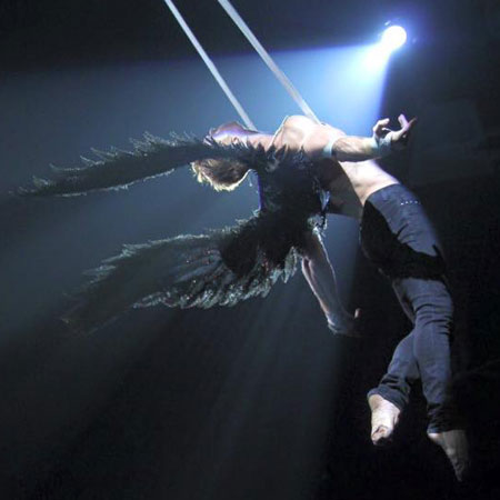 Acompañado por una talentosa acróbata femenina, nuestro espectacular dúo aéreo cautivará a las audiencias con su historia física de amor y pérdida. Transmitiendo una química palpable solo con sus cuerpos, los artistas circenses profesionales lo invitarán a compartir su encuentro aéreo ardiente.