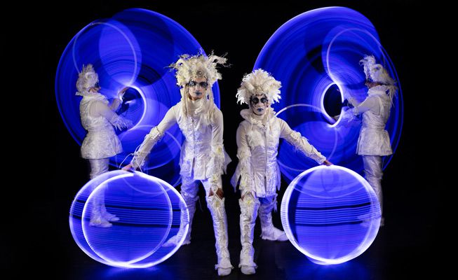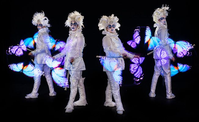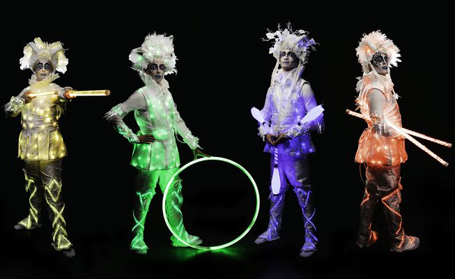 Este acto está iluminado con LEDs de colores brillantes, desde los trajes hasta los accesorios, y se puede programar para que coincida con su marca.