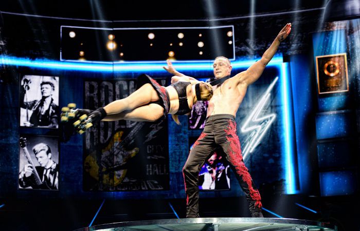 Mostrando un equilibrio sobrehumano y una coordinación impecable, nuestra pareja de patinaje asombra con impresionantes acrobacias y su química en el escenario.