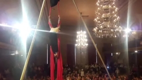 Esta acróbata ofrece una forma impresionante de contar historias, combinando la danza elegante con la destreza del movimiento en el aire sobre telas.