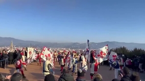 Estrellas de numerosos campeonatos de fútbol, estos tradicionales abanderados vienen acompañados de trompetistas y tambores.