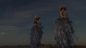 Desde lejos, nuestros zancudos se asemejan a criaturas marinas místicas, sin embargo, a medida que se acercan verás que sus trajes están hechos de botellas de plástico.