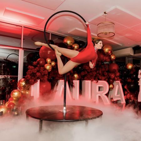 Estas acróbatas realizan espectáculos de baile en un aro independiente, proporcionando tanto fascinantes focos de atención como entretenimiento ambiental