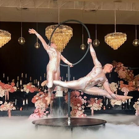 Ideal tanto para interiores como exteriores, este espectáculo de estilo circense es una opción popular para bodas, cenas y eventos de marca