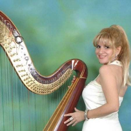 Presentando a una arpista europea con sede en los Emiratos Árabes Unidos.