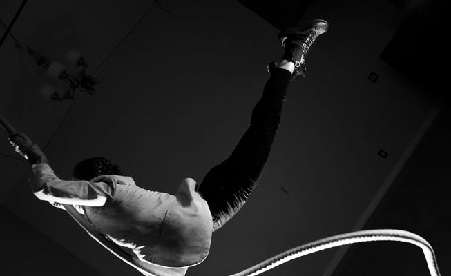 Además de cuerda aérea, nuestra acróbata aérea especializada en telas, aros y correas, puede adaptar sus rutinas a tu evento.