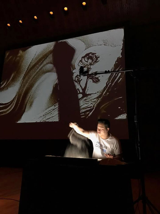 Ofrece animación en vivo de arena en tiempo real en eventos con proyección de imágenes o historias de arena pregrabadas.