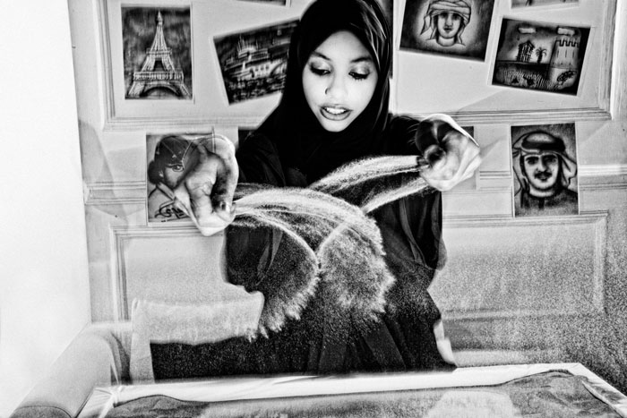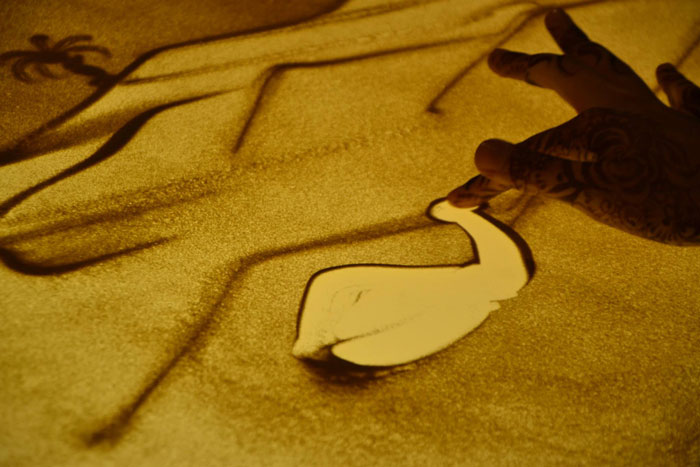 Contando historias emocionales y visualmente hermosas solo con arena, nuestra increíble pintora de arena invita a los espectadores a adentrarse en un mundo mágico de fantasía. Una talentosa joven artista, nuestra pintora de arena femenina de Dubai logró ganarse una reputación como la principal pintora de arena en Medio Oriente antes de cumplir los 18 años.