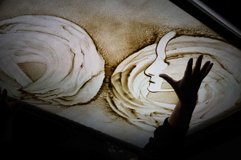 Apreciado por personas de todas las edades, esta actuación de arte en arena es la forma perfecta de transmitir un mensaje a audiencias de diferentes nacionalidades. Hablando un lenguaje universal, nuestro artista puede traducir tus ideas en historias de arte en arena completamente personalizadas.