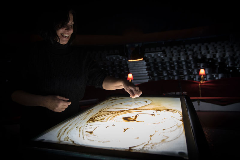 Un narrador creativo, este artista de arena en vivo siempre está dispuesto a crear cosas nuevas y enfrentar nuevos desafíos. Capaz de incorporar tu logotipo en su actuación de arte en arena, puede crear imágenes que evolucionan y se fusionan entre sí. Una experiencia visual única, sus animaciones en arena harán que la gente hable de tu evento durante años.