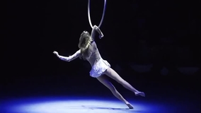 Artista de aro aéreo reconocida por su elegancia y fluidez, especializada en aro y trapecio de danza, con actuaciones etéreas llenas de líneas limpias